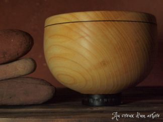 Tout d’abord, avec les essences de bois que j’utilise, la vaisselle en bois est parfaitement compatible avec une utilisation alimentaire, chaud comme froid.