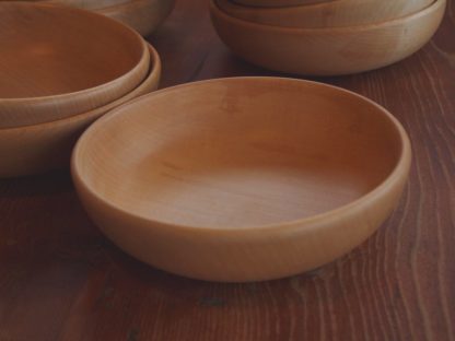 Disponibles dans plusieurs dimensions, ces écuelles sont en érable champêtre, un bois au grain très lumineux et fin. Elles sont très creuses (hauteur 5.5 à 6cm suivant les exemplaires)