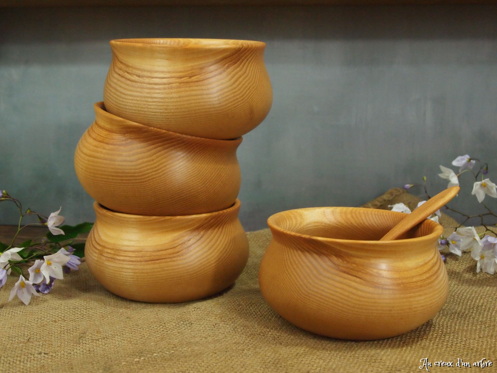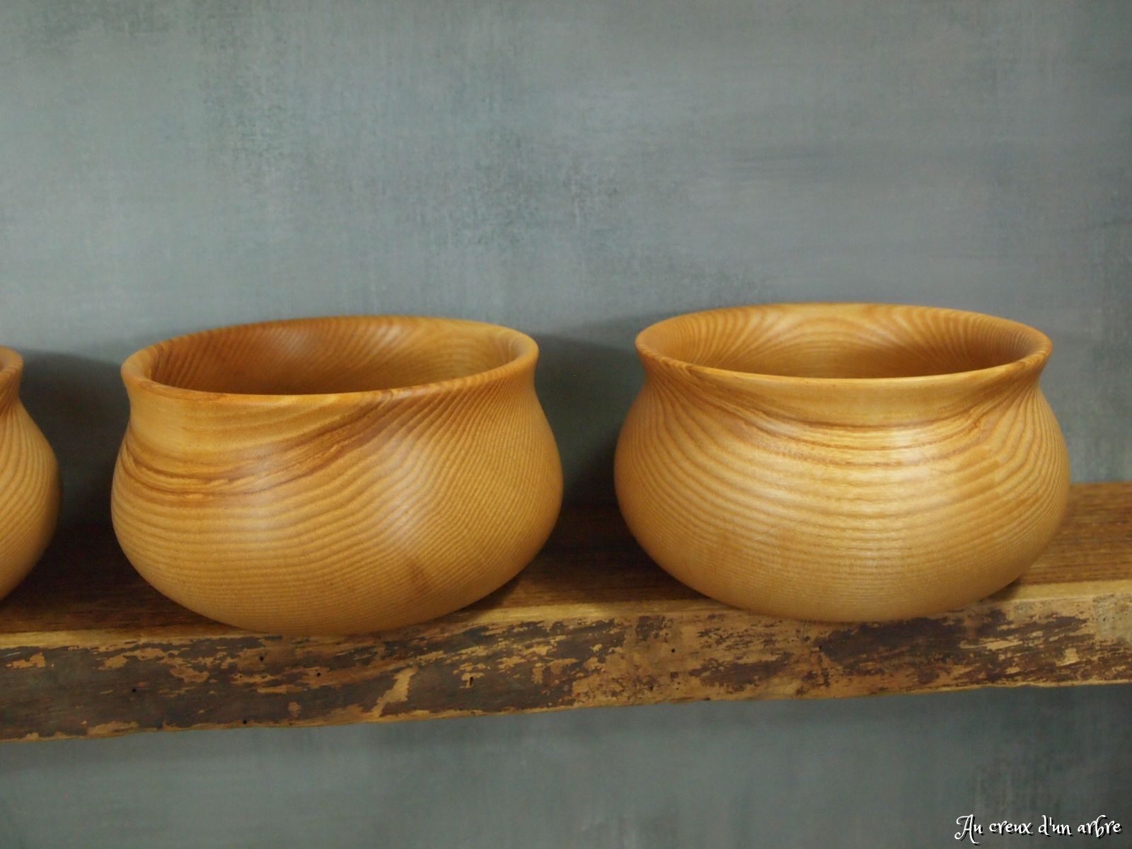 Les bols reçoivent une finition alimentaire (huile de colza AB), je n'utilise AUCUN autre produit (ni pâte à bois, ni résine, ni colle, ni rien du tout).