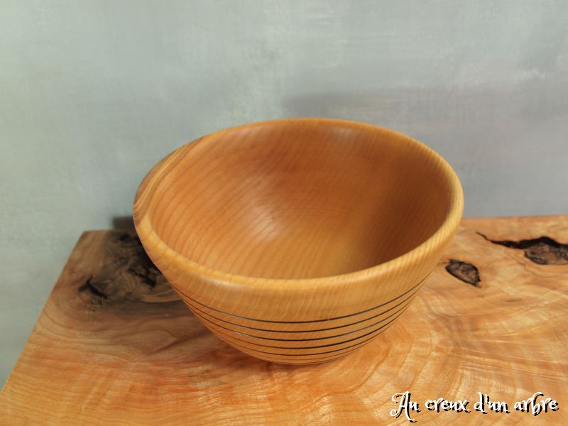 Les bols reçoivent une finition alimentaire (huile de colza AB), je n'utilise AUCUN autre produit (ni pâte à bois, ni résine, ni colle, ni rien du tout).