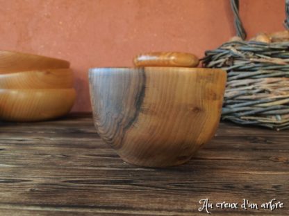 Chaque pièce est unique, réalisée manuellement dans mon atelier, en bois massif, sans aucun collage. La matière première est locale (Savoie et départements limitrophes). Les bois sélectionnés sont secs, adaptés à l'usage alimentaire.