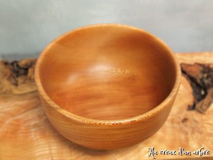 Chaque pièce est unique, réalisée manuellement dans mon atelier, en bois massif, sans aucun collage. La matière première est locale (Savoie et départements limitrophes). Les bois sélectionnés sont secs, adaptés à l'usage alimentaire.