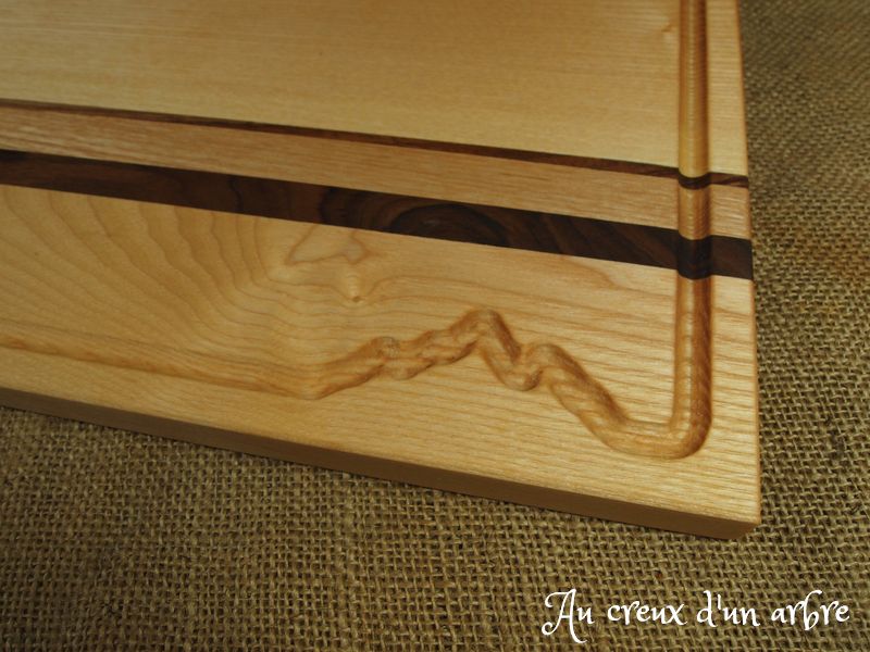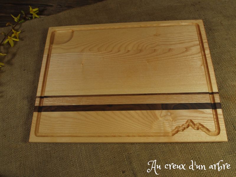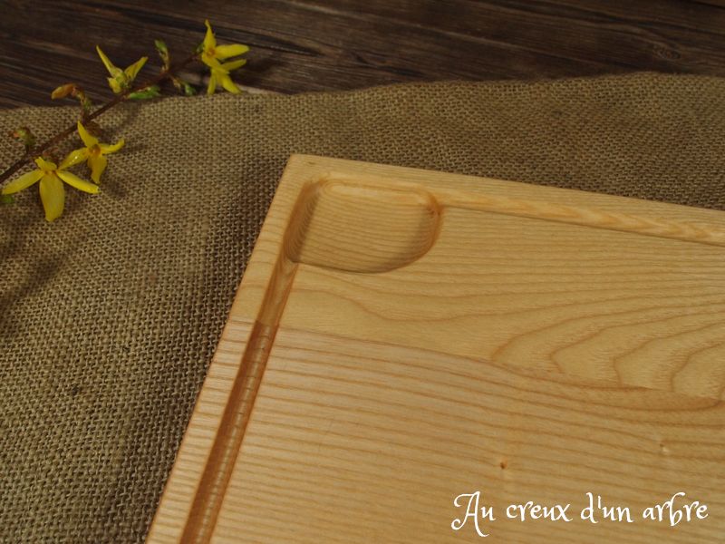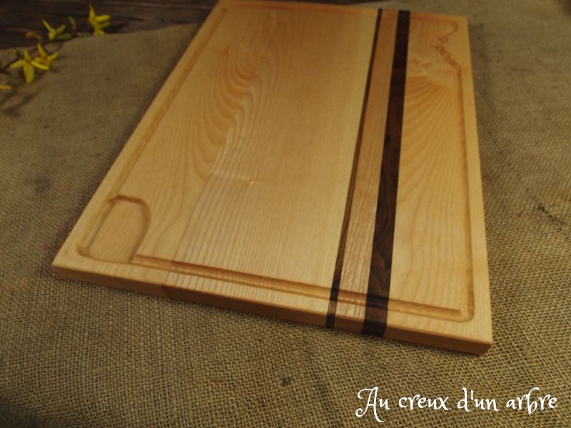 J’ai conçu ce modèle suite à de nombreuses demandes de planches à découper bien larges, avec une rainure pour le jus.